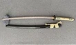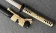 Tsuka (poignée) : bois dur recouvert de samegawa noire (peau de raie), tressage katatemaki en soie dorée, menukis dorés