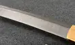 Sa lame de type Kiriha-zukuri, caractérisée par une courbure élégante et une pointe aiguisée, offre un équilibre optimal entre fonctionnalité et esthétique. La présence distinctive du kissaki kamasu, ou pointe de requin, rehausse la précision de coupe tout en ajoutant une note artistique à l'ensemble.