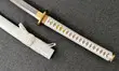L'esthétique sobre du katana, parée d'une teinte immaculée, évoque la pureté et l'excellence. La poignée, enveloppée dans un tsuka-ito de qualité supérieure, offre une prise en main ergonomique et sécurisée. Les éléments décoratifs tels que le tsuba (garde) et le menuki (ornements) sont soigneusement conçus, ajoutant une dimension artistique subtile à cet instrument d'exception.